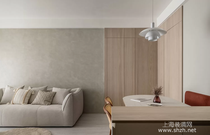 視覺減負(fù): 柜門選擇無拉手按壓設(shè)計,顏色與墻面同色(如暖白、杏子灰),減少壓抑感。