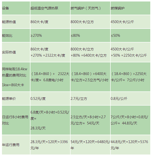 供暖的動力是免費(fèi)的空氣熱能,只需在吸收空氣熱能時消耗稍許的電力,而熱效率高達(dá)270%-430%,與傳統(tǒng)能源相比,不僅熱效率高,還避免了使用化工能源造成污染物排放,做到了節(jié)能環(huán)保雙重功效。