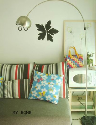 扮家心得:家是點滴積累的,平時多逛逛家居商場,多積累些小飾品比較好,一次性購買往往會時間太緊迫。 L型沙發(fā)加條紋抱枕共1500元,原價2800,樣品再砍價,1500就拿到了,當時買得比較急沒有細選,覺得占面積太大了,但是大有大的好處,橫七豎八都可以躺。