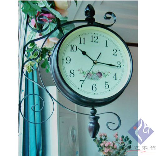 式田園風(fēng)格咖啡色鐵藝雙面掛鐘
