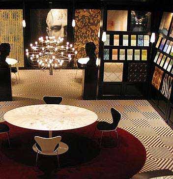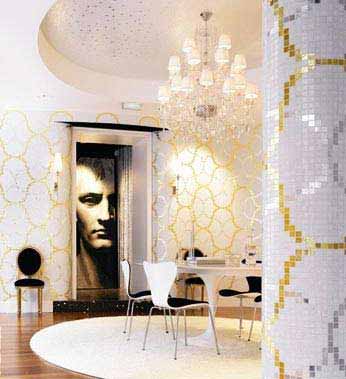 仿天然大理石的古典質(zhì)感墻磚,纏花圍繞的腰線令空間充滿濃郁的古典藝術(shù)氣質(zhì)。金色,是大自然(企業(yè)博客|視頻|專題)中至高無上的純色,在燈光的掩映折射下,絢麗而華貴。白色的馬賽克在絢麗中顯得更加清爽,仿佛白色的珍珠透過古羅馬高高的石柱,點點撒落。