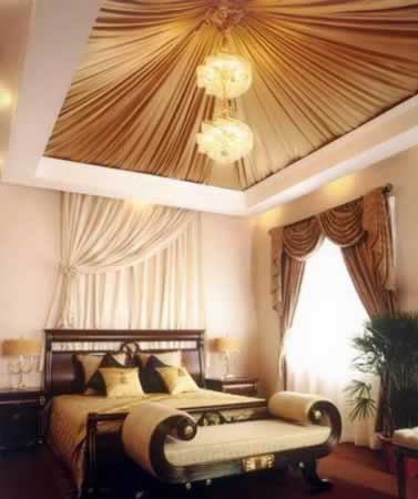 臥室用布藝軟包的方式吊頂,是整個房間最有特色的地方。再配以高貴典雅的水晶吊燈,將整個房間的貴族氣質(zhì)顯現(xiàn)得淋漓盡至。