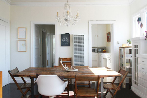 概要: 這個(gè)明亮的公寓如同窗外的陽(yáng)光一樣燦爛。以白色為主色調(diào),低調(diào)中彰顯迷人。并不昂貴的家具裝點(diǎn)出一個(gè)溫馨舒適的家?! ∨f舊的餐桌是業(yè)主MM自己淘回來(lái)的,是個(gè)二手貨哦。在這個(gè)白色的空間里卻成為一大亮點(diǎn)在 將客廳的一角做為工作室,沒(méi)有單獨(dú)隔起來(lái),一是因?yàn)榭臻g不夠,二來(lái)也不用,都是安靜的人,不會(huì)相互干擾到。