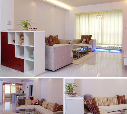 概要: 新婚房以簡(jiǎn)約為主,總的色調(diào)以清新淡雅為好,讓人覺(jué)得舒適、安逸。當(dāng)然在整體設(shè)計(jì)的把握下,為了突出喜慶的氣息,局部可以有一些鮮艷、明亮的色彩,新婚居室可以在色彩上做足文章。紅色是傳統(tǒng)的中國(guó)式婚禮的主色調(diào),但是紅色的用法,要點(diǎn)到為止。以下為婚房裝修案例??蛷d全景,可以直接看到里面的吧臺(tái),視線很好,空間通透,紅白的顏色搭配很靚麗。