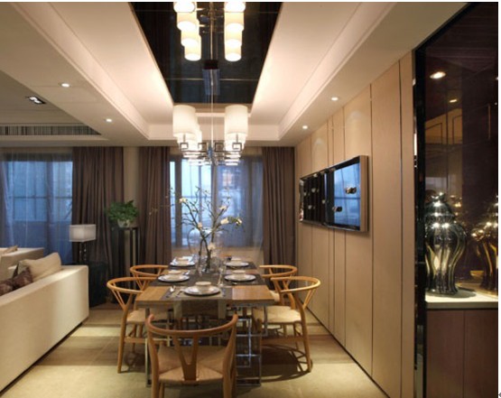 所謂設(shè)計(jì)中的“新東方主義”,究其實(shí)意-古今一脈相承,在于援引中國(guó)文化生活中的傳統(tǒng)意符,與現(xiàn)代生活精神、設(shè)計(jì)構(gòu)思和施工技術(shù)完美結(jié)合,以期對(duì)室內(nèi)空間、傳統(tǒng)文化和業(yè)主的生活審美態(tài)度進(jìn)行當(dāng)代思想的詮釋??蛷d通透的空間布局,大面積的白色,淺木色形成和諧的空間塊面;走廊錯(cuò)落空間的韻律虛實(shí)相生,線面結(jié)合表達(dá)了空間的體量與美感;餐廳橫與豎的不規(guī)則的寬窄變化通過(guò)墻、地拼花的處理,增強(qiáng)空間的連續(xù)和現(xiàn)代感。廚房是明亮的高調(diào)空間,以天花的符號(hào)設(shè)計(jì)作為亮點(diǎn),開放空間的設(shè)計(jì)延伸到地面;