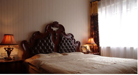 主臥床是古典的美式家具,頭層牛皮的高靠背配合精致手工雕花,體現(xiàn)主人對生活細節(jié)的追求。從臥室走到客廳,古典家具到現(xiàn)代氛圍,猶如穿越時光的電影情景再現(xiàn)。
