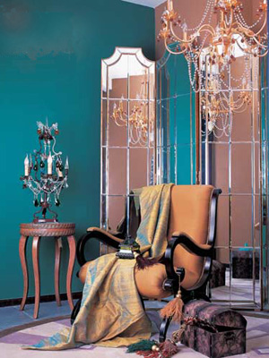 **派的布藝裝飾也在散發(fā)無(wú)盡的女性魅力。奢華的夢(mèng)中有著閃光的綢緞、豐富的刺繡、極為消耗面料的褶皺,甚至在沒(méi)有窗子的墻壁上,也用帷幔遮擋做裝飾。其次是裝飾畫(huà),可以用相似的古典風(fēng)格的其他作品代替,一兩幅技藝高超的畫(huà)作是必需的。