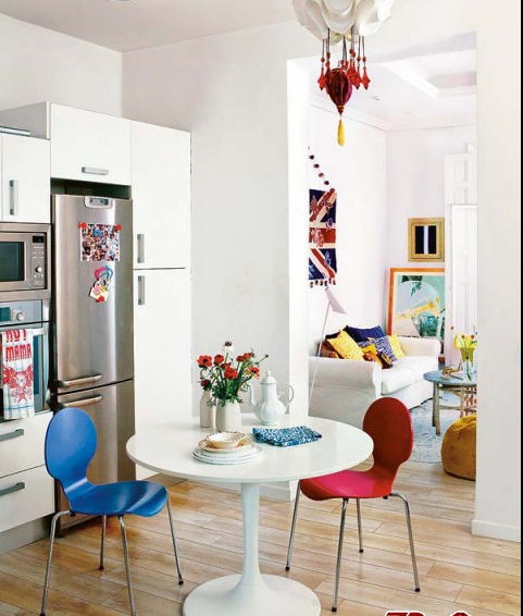 本期案列為位于西班牙的馬德里一幢繽紛多彩的公寓樓的某一個單元,60平左右的小戶型。走進(jìn)這個色彩繽紛的小屋子撲面而來的讓人感覺平和而溫馨。公寓的主人是一對留學(xué)生夫婦,不是保留本國的文化特色,充分融入這個這國家的文化氛圍,很精彩。