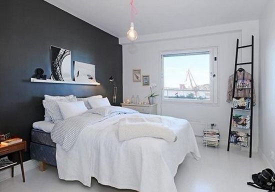 室內(nèi)純白色的天花+墻壁,就像是把白云一直延伸到室內(nèi)。灰黑色的墻壁是作為明暗平衡的主要元素。值得注意的是,梯子形狀的衣帽架,造型感、實(shí)用性和隨意感十足。