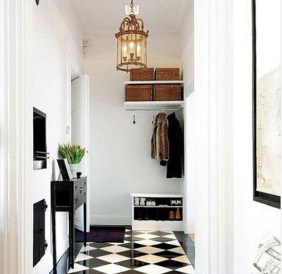 黑白磚塊交叉的地板,給衣帽間增加線條的美感,用直線營造曲線,一種線條,兩種感覺??Х壬B籠式的吊燈,很有古典的氣息,衣帽間外的木地板的咖啡色搭配一起,有相互呼應(yīng)的感覺,再搭配一個熱情如火的紅色沙發(fā),也是為下一步以紅色調(diào)空間拋磚引玉。