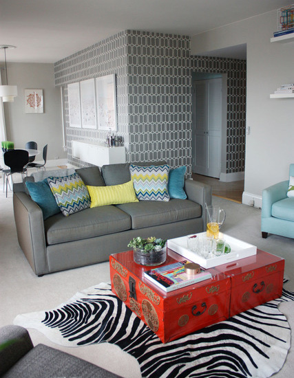本案例是一位從海外歸來(lái)的三口之家居住的房子。由于在外國(guó)呆的時(shí)間長(zhǎng)所以要求是想讓自己的房子具有都市的成熟時(shí)尚風(fēng)格,家里又不想讓自己的家像大多數(shù)家一樣用單調(diào)的白色粉飾家居墻壁。所以就把墻壁弄成灰色和鮮艷顏色的搭配,既讓空間在灰色的裝點(diǎn)下保持明亮。又能運(yùn)用灰色的顏色變化增加設(shè)計(jì)的層次。