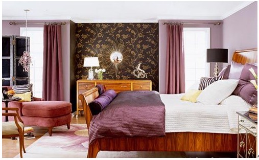 明媚的室內(nèi)環(huán)境,印花窗簾,打破紫色的暗淡。添加白色調(diào),某些區(qū)域注入更明亮的色調(diào)來搭配紫色,讓居室保持著紫色的清透淡雅。