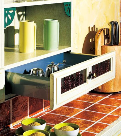 立柜在廚房中一般體積較大,所以它的收納空間相對(duì)來說也就比較寬裕。一般來說,可以把它作為儲(chǔ)藏柜來運(yùn)用,不太常用的物品都可以收納進(jìn)這個(gè)“龐然大物”,既節(jié)約了空間,又使廚房顯得整齊利落。而且,立柜中都設(shè)有通體筐,是最高的收納籃子,它和櫥柜一般高,可以將物品分類儲(chǔ)存,決不雜亂。