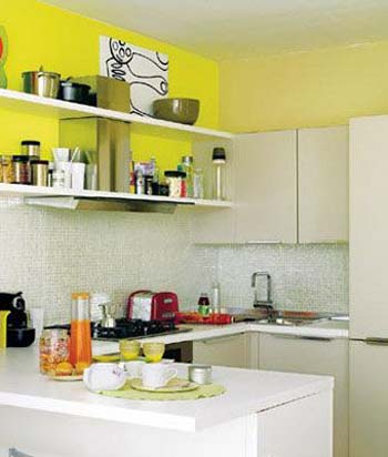 在墻面上設(shè)置擱板,則能起到更強(qiáng)的收納功能。像喝水的杯子,各種不銹鋼的小鍋,存放調(diào)味品的調(diào)料瓶,甚至可以放些相框、花瓶,只要喜歡,任何東西都可以放在上面。既省去其它的收納空間,又調(diào)節(jié)了枯燥的廚房空間。