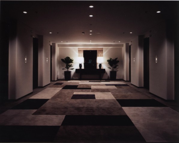 這個后現(xiàn)代感十足的公寓大堂設(shè)計,格調(diào)優(yōu)雅,幾何格子圖案,依著深深淺淺的顏色無規(guī)則排序著。素色能夠渲染出空間低沉的浪漫,反映在地毯的選擇上,采用素雅的色彩,能夠突出空間低調(diào)氛圍,進(jìn)而能夠使們煩躁的心態(tài)獲得平靜的機(jī)會。雨天、晴天、陰天………每個歸家的人路過這里步入電梯,回到家。