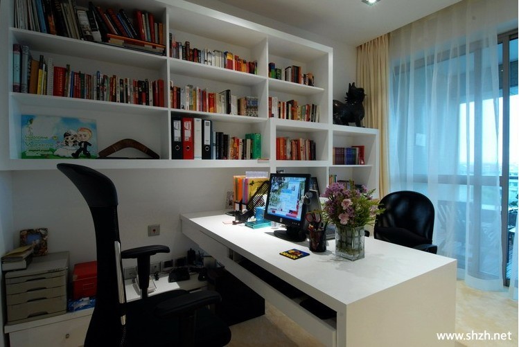 概要: 書房在都市家庭生活中的作用很重要,怎么樣合理的安排格局,如何有效地提高書房環(huán)境及工作效率。一般家庭中書房面積在8-15平方米,在這個內(nèi)定范圍內(nèi),實現(xiàn)收藏、讀書、休息區(qū)。一般收藏區(qū)適合沿墻展開,一來比較節(jié)省空間也能充分利用室內(nèi)墻面的應(yīng)用?! 朗侨藗?nèi)粘Wx書寫字的地方,光線一定是書房里最好的。