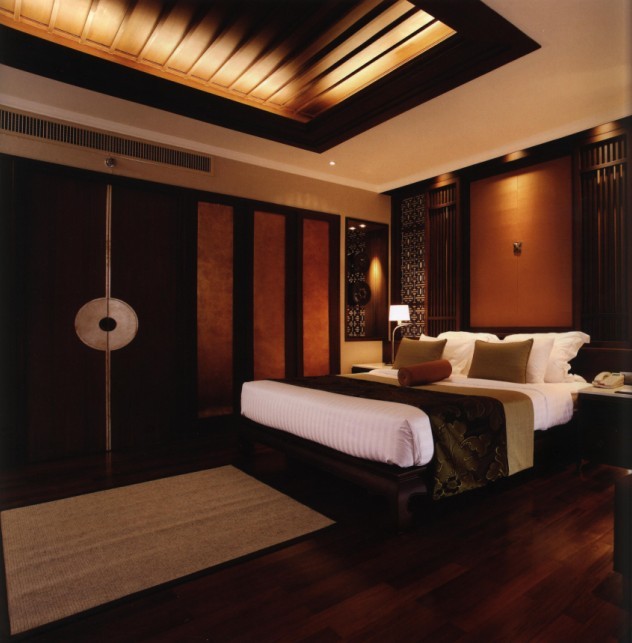 這個(gè)東南亞風(fēng)情的臥室,在空間設(shè)計(jì)中,更多地運(yùn)用了木質(zhì)材質(zhì)作為裝飾的主要材質(zhì),用深色調(diào)的色彩來烘托出古色古香的裝飾效果,為了強(qiáng)調(diào)色彩對比,床的設(shè)計(jì)則采用了白色和淺綠色的淺色,進(jìn)而形成混搭的裝飾風(fēng)格,給人留下深刻的印象。