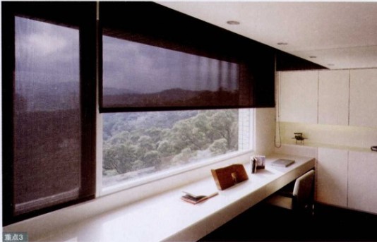 特意將書桌面向窗,讓屋主閱讀時也能欣賞到窗外的美景,從柜體延伸的書桌有一氣呵成的順暢感。