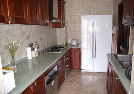 6.廚房宜采用歐式櫥柜,歐式櫥柜能整齊地收納廚房雜物,使廚房容易保持清潔,櫥柜以淺色或冷色系為佳,在烹飪時(shí)使人容易保持輕松愉快的心情。