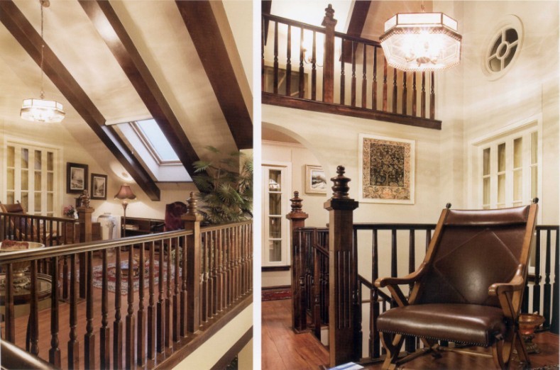 本案為美式風(fēng)格,在這個(gè)美式風(fēng)格的住宅環(huán)境里,設(shè)計(jì)師均衡考慮各個(gè)房間,并對項(xiàng)目進(jìn)行整體處理,旨在保證各個(gè)房間之間的流暢感,以盡量避免出現(xiàn)不協(xié)調(diào)的地方。首先,借用建筑坡屋頂?shù)某叱叨?,將原建筑兩層?fù)式構(gòu)架調(diào)整為三層,使空間更具層次感。其次,在格局的布控上講究對人性的極大尊重,具有獨(dú)立的會客廳、咖啡室、雪茄室、兒童游樂區(qū)和一間超過30平的主衛(wèi),使得室內(nèi)除了給人極大的心理和視覺滿足感外,還兼具舒適性。這些在普通住宅不具備的功能區(qū)域,適度地張揚(yáng)了主人的個(gè)性,同時(shí)也銘刻著主人事業(yè)的成功。