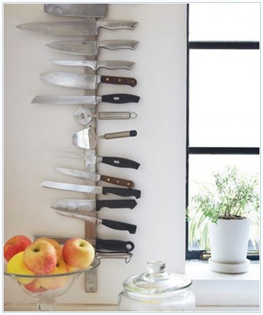 掛在墻壁上的磁性刀架既方便整理刀具,又是一款不錯(cuò)的裝飾品,難怪是女主人最喜歡的設(shè)計(jì)。