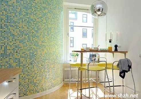 由于陶瓷馬賽克瓷磚具有良好的防滑性,在家居裝飾中的應用也比較廣,特別是衛(wèi)生間、陽臺、浴室等空間。在大型公共場館,陶瓷馬賽克也被用來拼成壁畫等圖案,用以顯示陶瓷馬賽克的超凡魅力。