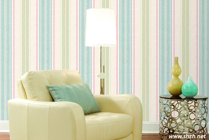 ②如房間原本就顯得高挑,那么可以選購(gòu)寬度較大的圖案或稍寬型的長(zhǎng)條紋墻紙,用在流暢的大空間中,能使原本高挑的房