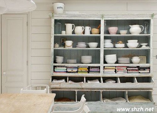 在飯廳用一個這樣大的收納柜,將可愛的瓷具陳列在其中,不僅能起到收納的作用,更添一份展示收藏品的味道。