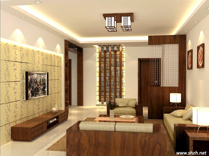 首先在客廳的設(shè)計上,我們可以把中式風(fēng)格的古典與現(xiàn)代風(fēng)格的簡約相結(jié)合,呈現(xiàn)出強烈的視覺沖突。比如可以在客廳醒目的位置上掛上中式的書法、山水畫來加以裝飾。時尚與古典的結(jié)合,給人煥然一新的感覺。