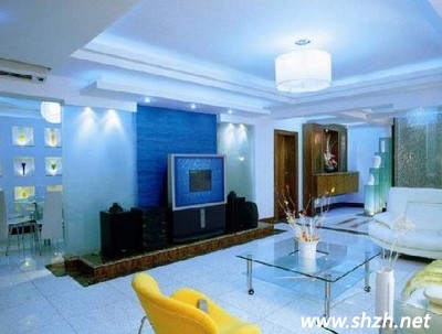 地面:地面和沙發(fā)都選用白色的,很好的緩沖了藍(lán)色所帶來(lái)的大面積的沖突感,整個(gè)空間看起來(lái)更加的協(xié)調(diào)。