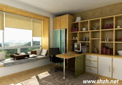 書房中的家具宜用深色,如栗色、深褐色、鐵紅色等色彩,給人以端莊厚重的感覺。
