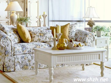 歐式田園大致可分為英式田園風格和法式田園風格。英式田園風格的家具多以奶白、象牙白等白色為主,使用高檔的樺木、楸木等做框架,配以高檔的環(huán)保中纖板做內(nèi)板,使用高檔油漆處理,制作以及雕刻都是純手工,線條細致,造型優(yōu)雅。英式田園風格家具還有另一大主要特點---華美的布藝,布面花色秀麗,多以紛繁的花卉圖案為主,碎花、條紋、蘇格蘭圖案是英式田園風格家具永恒的主調(diào)。法式田園風格最顯著地特征是家具的洗白處理及配色上的大膽鮮艷,洗白處理使家具流露出古典的雋永質感,黃、紅、藍的色彩搭配,則反映除了豐沃、富足的大地景象,而椅角被簡化的卷曲弧線及精美的紋飾也是法式優(yōu)雅鄉(xiāng)村生活的體現(xiàn)。