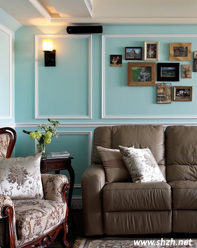 年輕人畢竟還是想時尚個性一些,小編建議我們大不可大費周章的通過裝修來達到效果,一些小小的裝飾品就可以讓你的家變得與眾不同了。照片背景墻的設計其實只是很普通的設計,但是與這樣一款云淡風輕氣質(zhì)的美式田園裝修來說,做舊處理的相框框架就已經(jīng)是非常大膽的想象。