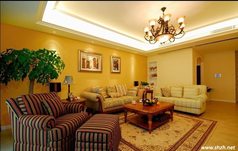 客廳的整體色彩則換上另外一種色調(diào),恬靜溫馨成為這個空間的主題,歐式風格延續(xù),為了讓整個空間不過于平淡,海里在沙發(fā)與裝飾品上用了許多心思,條紋撞色的單人沙發(fā)混搭,突出個性。