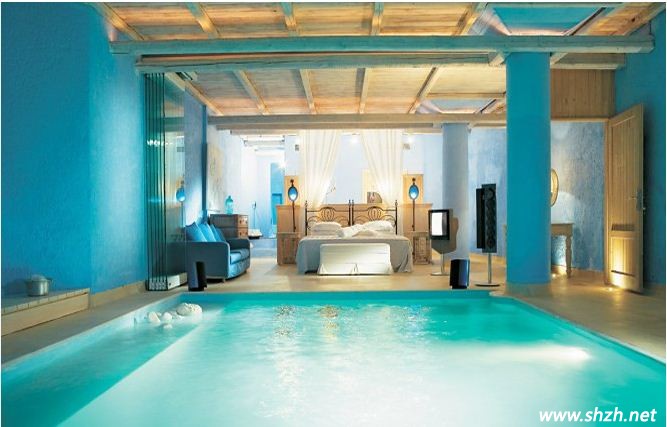 海底的世界讓您徜徉在海洋的世界里面,但是這款創(chuàng)意的設(shè)計(jì),更能俘虜您的心,設(shè)計(jì)師巧妙的將商業(yè)區(qū)域的游泳池搬到了臥室內(nèi),而且就設(shè)計(jì)再了床腳。如果想游泳了,可以隨時(shí)隨地的下床游玩,整個(gè)臥室的空間采用了藍(lán)色作為主色調(diào),與游泳池的色彩搭配的十分協(xié)調(diào),藍(lán)色來自于海洋的顏色,給人以清涼的感覺,而這樣創(chuàng)意的臥室設(shè)計(jì),會(huì)不會(huì)倍感清涼呢?讓酷熱的夏季遠(yuǎn)離我們吧!