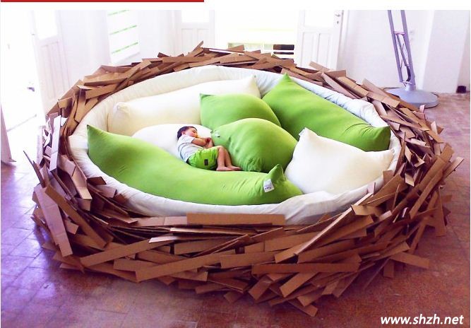 終于可以看到一款讓人心情平和的設(shè)計(jì)了,造型可愛的床造型,童趣十足,這是專門為小孩子設(shè)計(jì)的床,模仿了鳥巢的造型,說到這,你就可以想象了,不單是一張床那么簡(jiǎn)單,也許還寓意著“早起的鳥兒有蟲吃”,小孩子,要早睡早起,這樣才能精力充沛過好每一天。