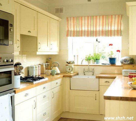 最后介紹的這款小廚房,非常樸實(shí)大方。而且亮點(diǎn)很多,比如內(nèi)嵌式的油煙機(jī)設(shè)計(jì),以及轉(zhuǎn)角處設(shè)置的拱形門收納,都會(huì)產(chǎn)生非常不錯(cuò)的視覺(jué)效果。再配上歐式的櫥柜門板設(shè)計(jì),讓小小的廚房更具有田園般的浪漫風(fēng)情。