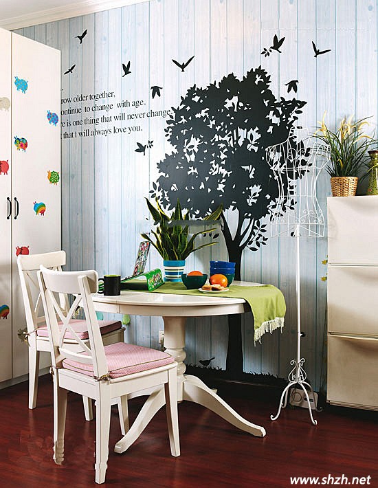 惟妙惟肖的紅實(shí)木質(zhì)地板,是最顯東南亞風(fēng)格的,保留原始本色。小戶型的我們想要更加突出東南亞風(fēng)情,只能把墻面和擺設(shè)發(fā)揮到最大用處,墻上栩栩如生的雨林繪畫(huà)展現(xiàn)大自然氣息,桌子上一盤(pán)棕櫚葉盆栽處處讓你融入東南亞風(fēng)情里面。