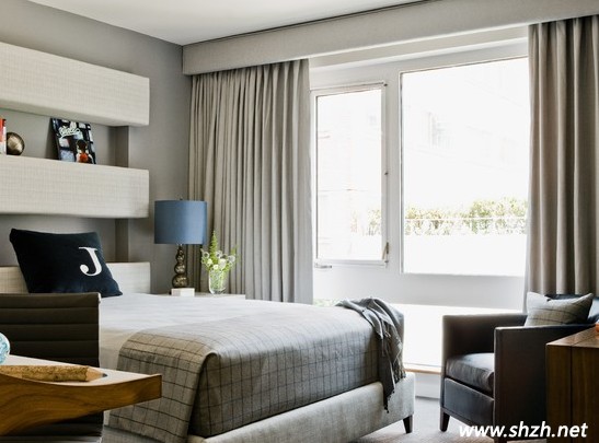 概要: 好的設(shè)計(jì)師即使對低調(diào)的灰色也能保持高度的敏感,將灰色打造出異樣的風(fēng)采。裝修臥室大多數(shù)人喜歡采用溫暖的色調(diào),而灰色卻無人問津。小編今天就為灰色伸冤,帶大家看看灰色臥室?guī)淼漠悩痈惺?。淺灰色的落地窗簾延伸了臥室的空間高度,深灰色的單人沙發(fā)椅顯得臥室典雅大氣,加上灰色系的墻紙以及淡灰色的床單和藍(lán)色臺燈的點(diǎn)綴,透過窗戶玻璃的反射,共同營造了高貴典雅的灰色調(diào)臥室。