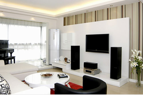 概要: 大面積的黑色烤漆玻璃和黑色系的電視機(jī),音響與淺色系的和諧、統(tǒng)一形成了鮮明的對比,給人一種時(shí)尚氣息。米色的沙發(fā)搭配簡單的小碎花靠墊給人舒適溫暖的感覺,使簡約中又不失溫馨??蛷d主要以白色為主顯得很清爽,適合白領(lǐng)新婚夫妻。瓷磚是現(xiàn)在很多客廳裝修的選擇,對于年輕人來說追求自己的舒適才是重點(diǎn)。瓷磚相對地板來說不僅方便平日清潔而且還能提升客廳的亮度。