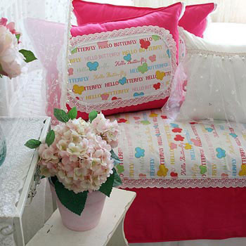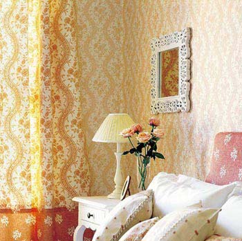 黃色為底床罩+紅色花朵靠枕 一幅田園氣息在臥室洋溢。以一種恬淡陶然的田園情懷再現(xiàn)精致浪漫的都市品質生活:聞著空氣中彌漫著愛的氣息,那一份溫馨,那一份感動,盡在這一瞬間。空間,因為得到釋放而精彩紛呈。