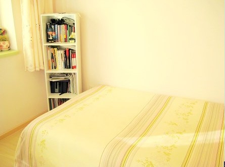 簡易的小角柜,方便又很平易近人,有生活的味道,不做作。床鋪和地板的顏色又想呼應(yīng)。