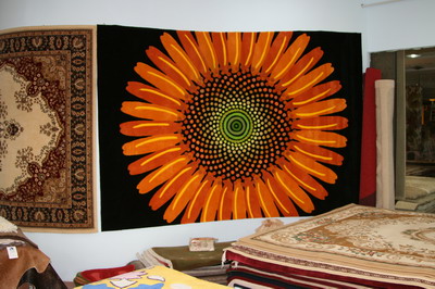 各種花朵圖案的地毯也是今年的熱點(diǎn)。像這塊大大的向日葵圖案的地毯,可以鋪也可以做掛毯。
