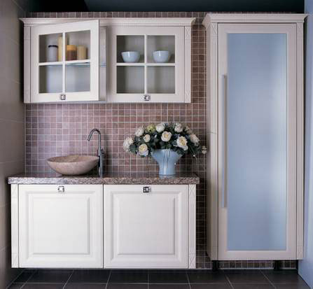 將往昔的魅力與現(xiàn)代生活結(jié)合在一起,永遠(yuǎn)是設(shè)計(jì)師創(chuàng)新的源泉。浴室家具門板上的刀切紋路,小巧古典的柜門把手,這些細(xì)節(jié)跟過(guò)去在舊電影中看到的一樣,呈現(xiàn)著一股凝固住時(shí)間的懷舊氣息。只有注重整體細(xì)節(jié),才會(huì)有完美無(wú)暇的整體效果。整面主題墻,無(wú)論色調(diào)、造型與飾物的擺放,都顯得輕松而舒適,每日一小時(shí)的衛(wèi)浴時(shí)光成為鄉(xiāng)野中的小憩,帶著懶洋洋的悠閑氣質(zhì)。