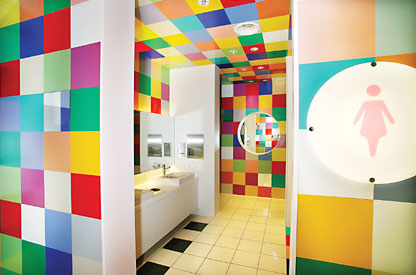 臺**中中友百貨公司推出的十三套主題盥洗設(shè)備,從普普藝術(shù)到巴洛克風(fēng)格,將馬桶及其盥洗空間設(shè)計(jì)成叢林或水族世界,每套主題盥洗設(shè)備造價(jià)與裝設(shè)費(fèi)用高達(dá)三萬美元以上。
