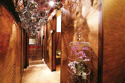 以華麗金屬色調(diào),搭配鮮紅的休憩椅,大片珠簾環(huán)繞中島化妝臺區(qū)域,水晶燈及金色雕框鏡子環(huán)繞其間,呈現(xiàn)金碧輝煌的雍容氣度。值得一提的是,其中一間廁所,針對仕女特別設(shè)置自動(dòng)沖水的下身盆,如此貼心的設(shè)計(jì),比五星級還五星級,讓如廁也是一種人生的享受!