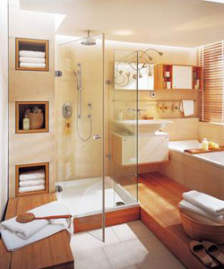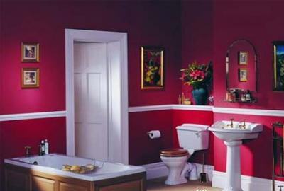 三要素定色屬于暖色系的紅、黃、橙,令人溫暖、喜悅,同時使空間感覺變小,而藍、綠等冷色系的顏色令人感覺寒冷、冷靜,使空間感覺較寬敞;另外,彩度及明度較高的色彩可塑造空間的寬敞,反之則使空間有穩(wěn)重感。除了色彩本身,照明效果就象色彩的“魔術(shù)師”,相同的顏色常因不同的光線亮度,在視覺上產(chǎn)生差異。因此,為衛(wèi)生間選擇色調(diào)前,應(yīng)綜合考慮以上三要素。
