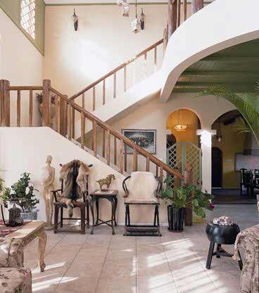 貫穿于廳堂的原木樓梯,是美式鄉(xiāng)村風格的典型特征,木材紋理清晰。明黃的墻壁,自然、懷舊,仿佛聞到了濃郁泥土的芬芳。