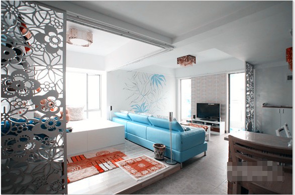 整個客廳的采光很好,讓人的心情也隨之陽光起來。色彩的運用使客廳和過道渾然天成。簡單的布置,沙發(fā),茶幾,電視滿足了最基本的閑暇娛樂時光。電視柜上的布簾,隨意擺放的靠墊,都選擇了大花型圖案,頓時打破了空間的單一感。