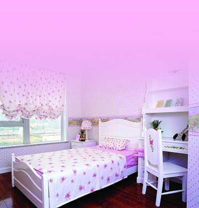 簡潔設(shè)計(jì)的最大難點(diǎn)便在于不能使空間過于呆板,此時(shí)設(shè)計(jì)師對線條把握就顯得至關(guān)重要,女兒房間(次臥)里加強(qiáng)了純白和淡粉色的色調(diào),強(qiáng)化了女性情懷的別致,同時(shí)又與臥室和客廳的家具用了統(tǒng)一的簡歐式造型,雖然白色的床略顯蒼白,但柔美的線條頓時(shí)讓內(nèi)容豐富了許多,簡單的白色床頭柜、纖細(xì)優(yōu)雅的臺燈、飾有小花的書桌和拉椅,臥室的必備家具搭配上以粉色和紅色花朵為主圖案的軟性飾品:窗簾、靠枕和被罩。一間適合女孩的浪漫臥室就這樣布置出來了。